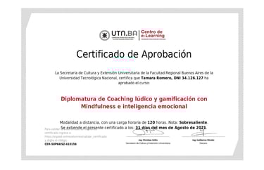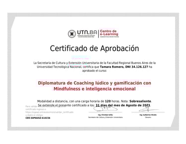 Diplomatura de Coaching lúdico y gamificación con Mindfulness e Inteligencia Emocional, Universidad Tecnológica Nacional, Facultad Regional Buenos Aires (UTN BA). (2021).