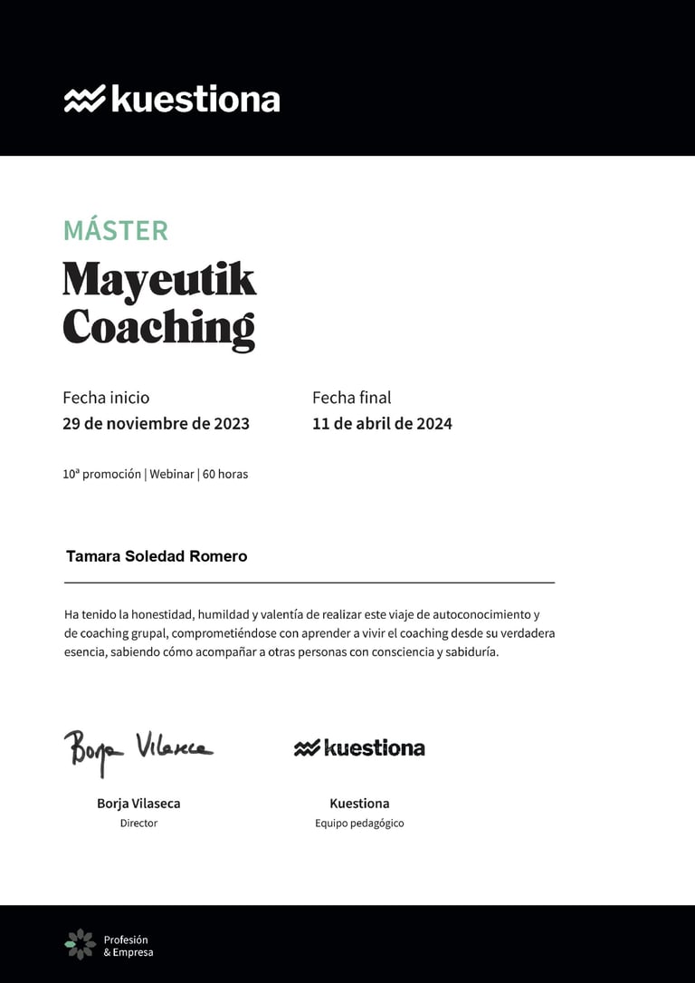 Máster Mayeutik Coaching, Kuestiona. (2023-2024).